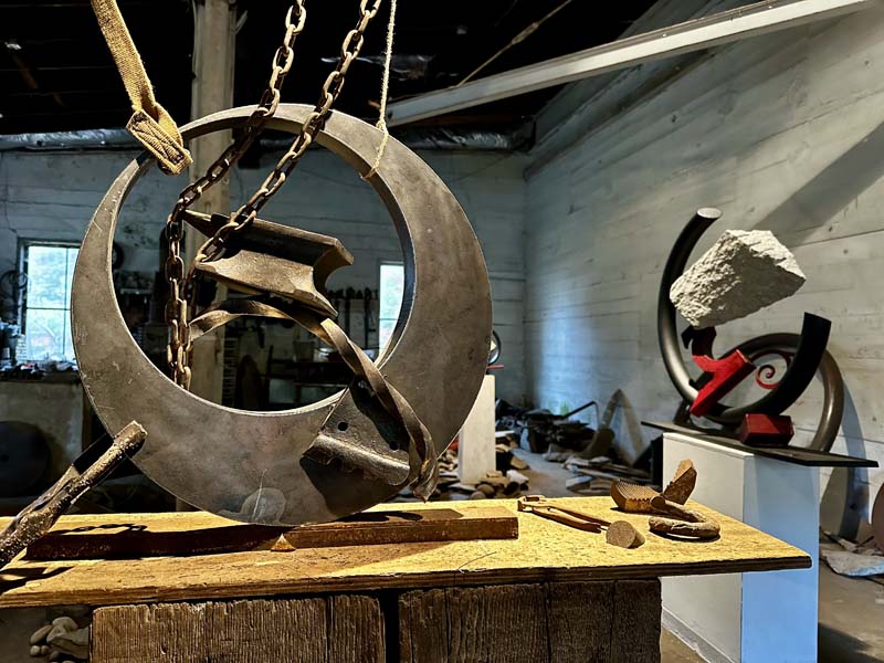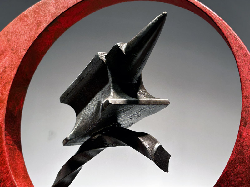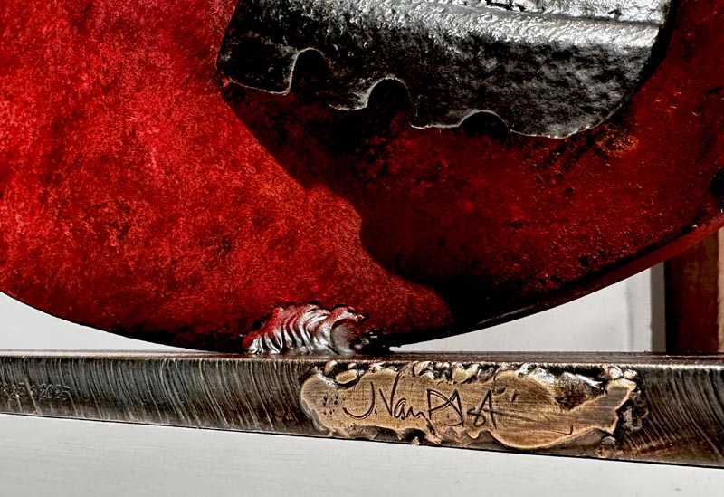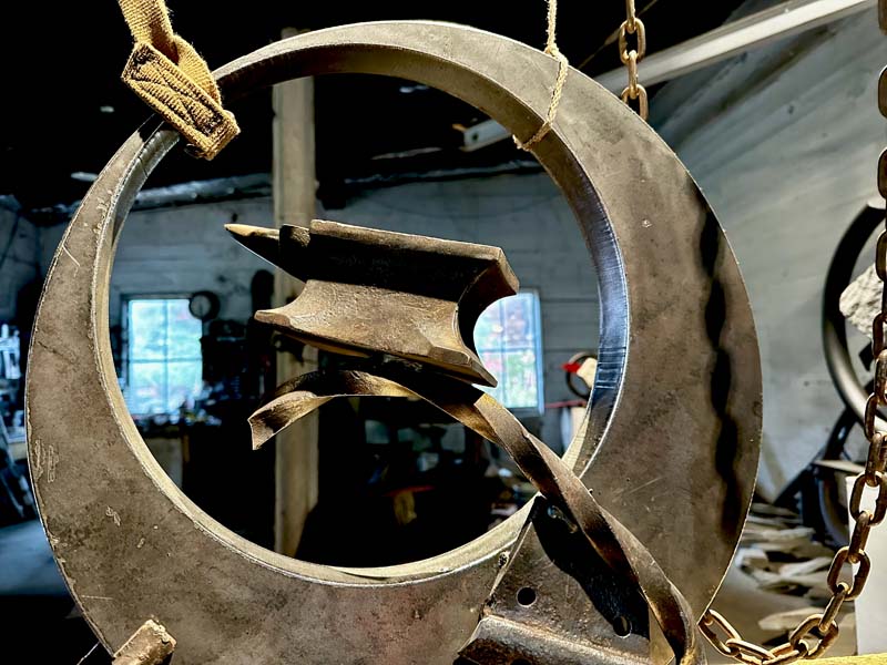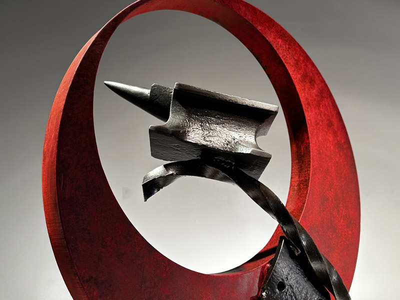 | Artist Statement – John Van Alstine Many of my works incorporate anvils, either real or cast. The anvil's form, reminiscent of a boat or vessel, carries an inherent suggestion of journey—an idea that has long fascinated me. As a metalworker and “assembler,” I regard the anvil as both a physical and conceptual forge, the place where things come together and where the act of making transforms into art. For me, it holds an almost sacred presence—an altar of creation. In fact, I've titled a number of these works Ara, the Latin word for “altar.” Throughout my practice, I strive to breathe a sense of life and airiness into materials that are otherwise dense and earthbound—rough granite, industrial-scale steel, and other heavy elements. The anvil, perhaps the ultimate emblem of weight and solidity, becomes especially compelling when lifted into the air. That gesture introduces a dynamic tension, a sense of levitation that animates the work and challenges our expectations of gravity and mass. |