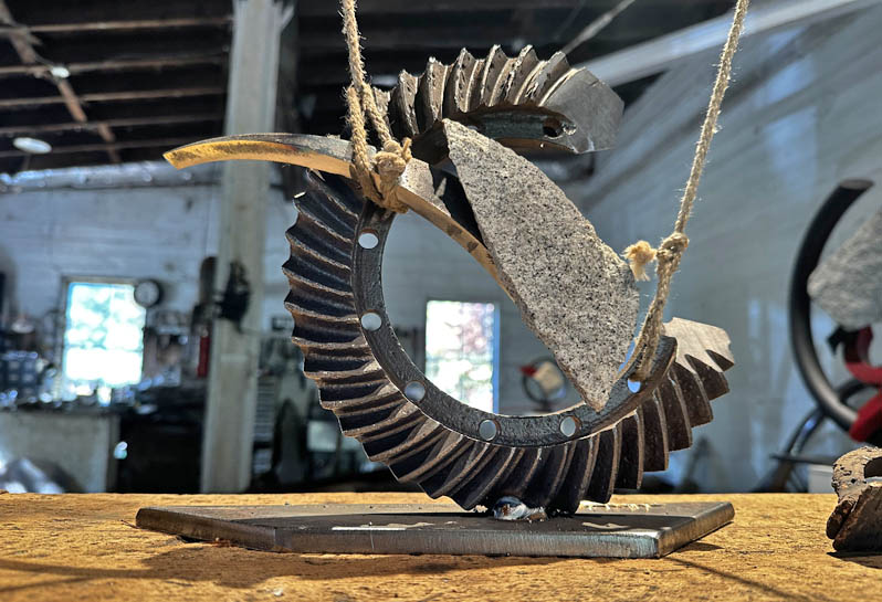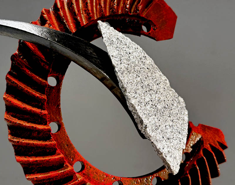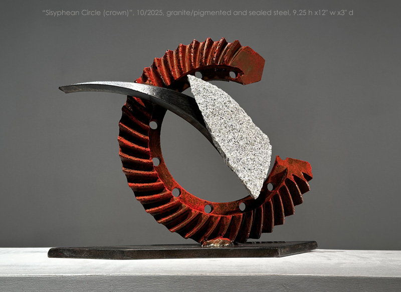 "SISYPHEAN CIRCLE (crown)", 2025, granite and pigmented and sealed steel, 9.25"h x12"w x3"d (23 x 30 x 7cm)