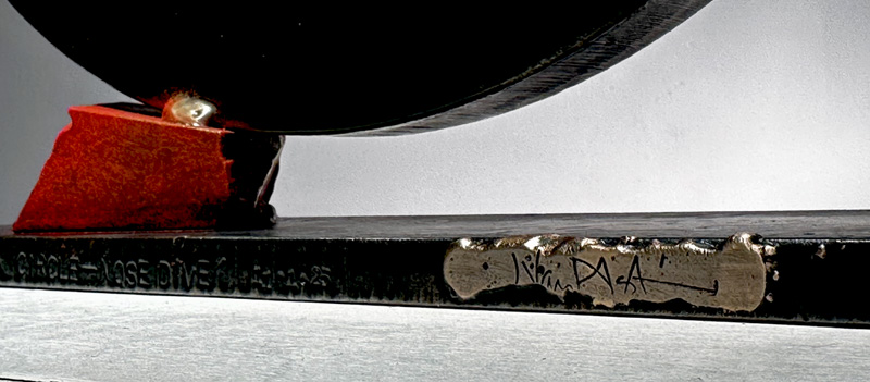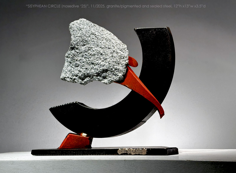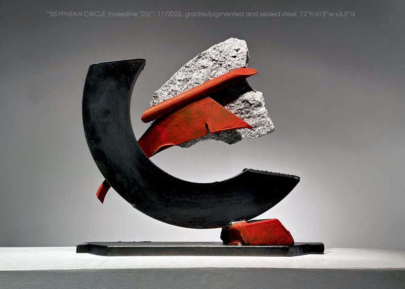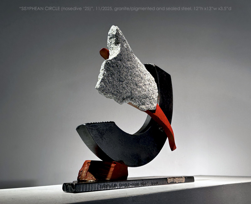 "SISYPHEAN CIRCLE_nosedive '25", 11/2025, Vermont granite/pigmented and sealed steel, 12"h x13"w x3.5"d (30 x 33x 9 cm)