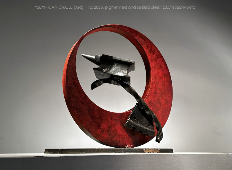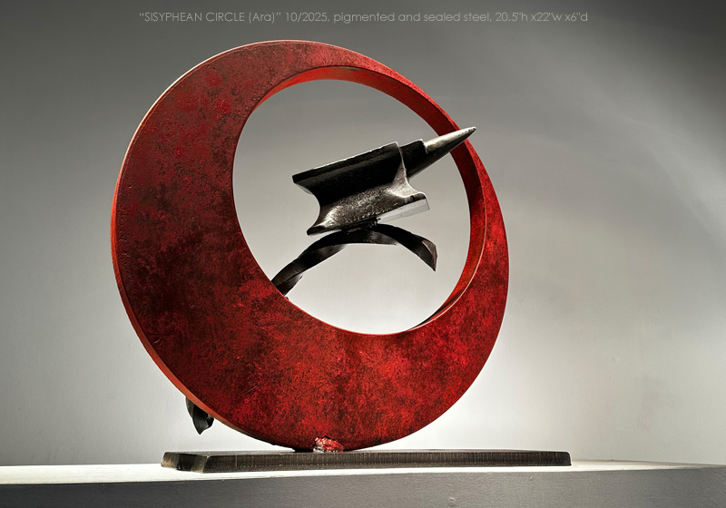 "SISYPHEAN CIRCLE (Ara)", 10/ 2025, pigmented and sealed steel, 20.5"h x22"w x6"d (52 x 56 x 15cm)