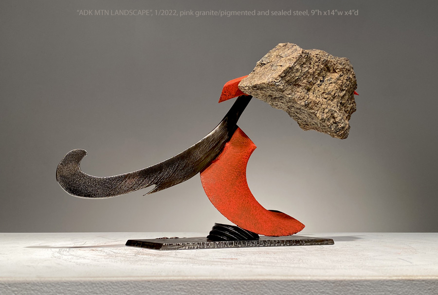 pink granite and pigmented and sealed steel, 9"h x14"w x4"d (23 x 35x 10cm)