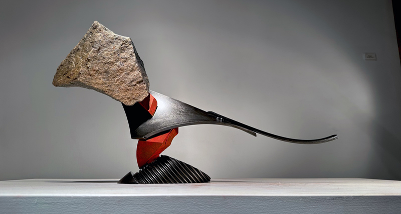 green NY granite and pigmented and sealed steel, 13"h x23.3"w x5.5"d (33 x 60x 14cm)
