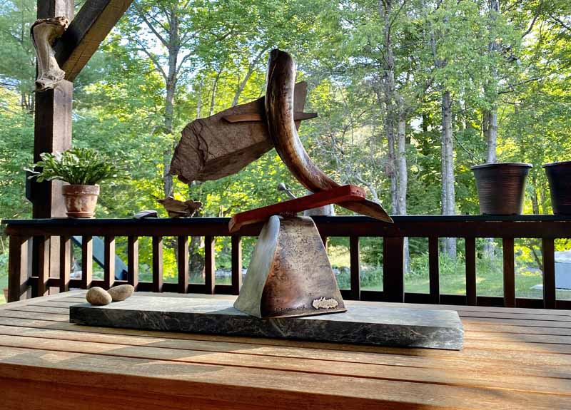 "FLEDGE 6-20" 6/2020, slate/bronze, 19.5"h 16.6"w x8"d (50h x 42w x 20d cm)
