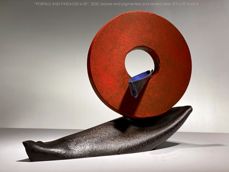 "PORTALS and PASSAGES 4-20" 2020, bronze and pigmented and sealed steel, 8"h x10"w x4"d (20 x25 x10cm)