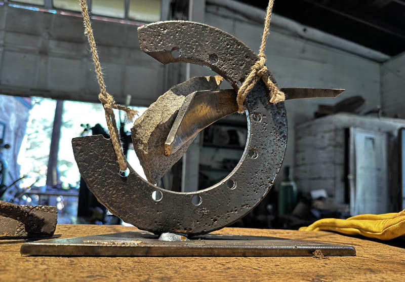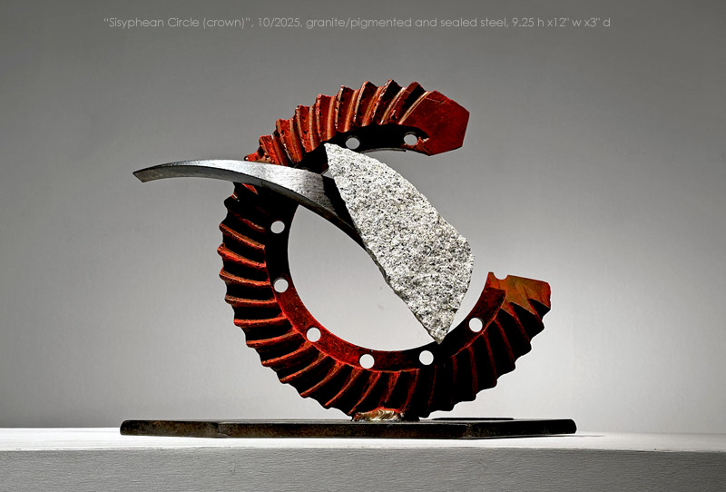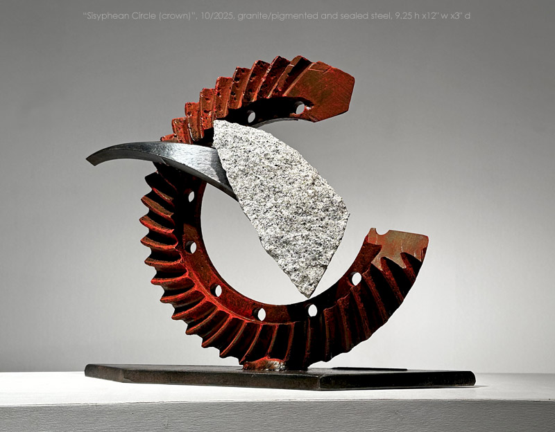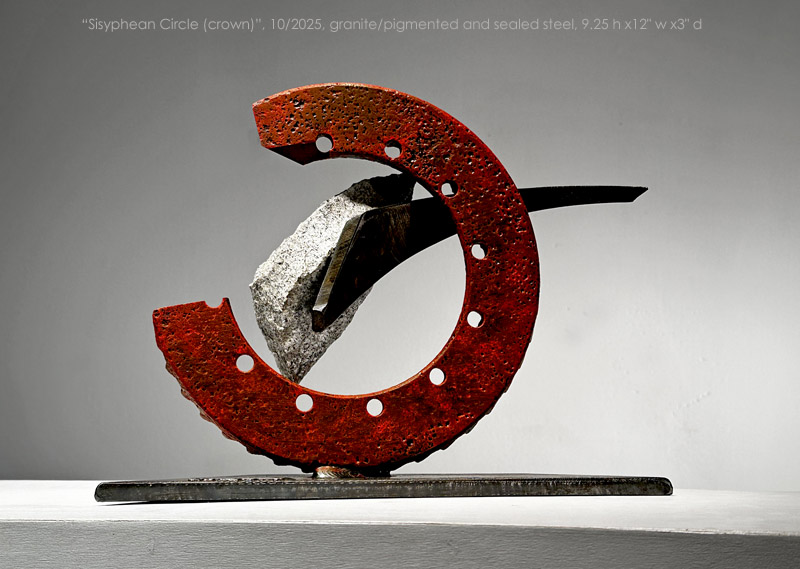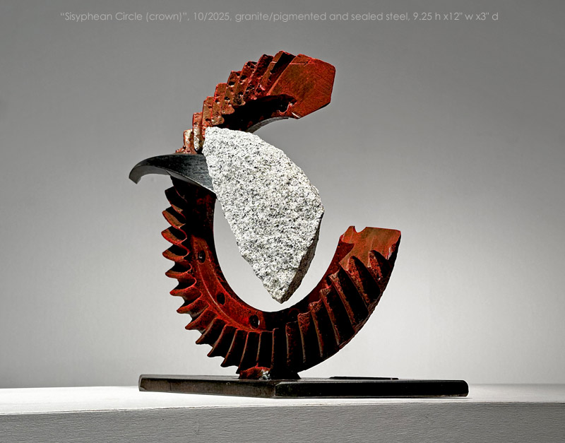 "SISYPHEAN CIRCLE (crown)", 2025, granite and pigmented and sealed steel, 9.25"h x12"w x3"d (23 x 30 x 7cm)