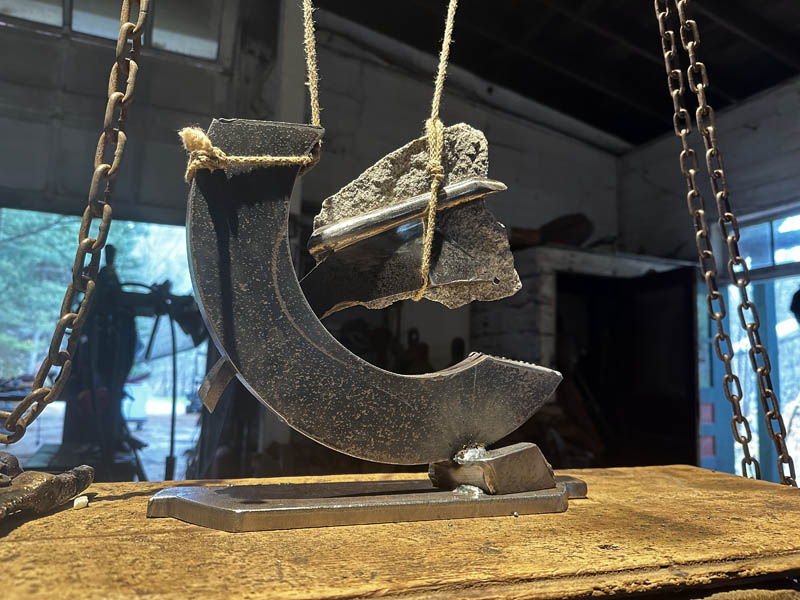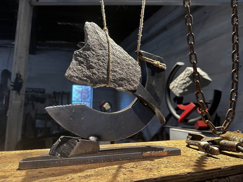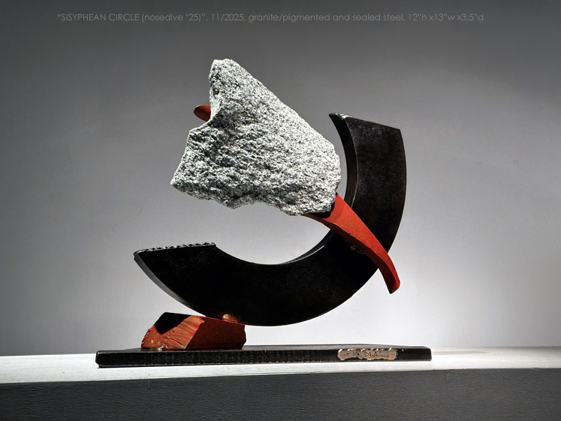 "SISYPHEAN CIRCLE_nosedive '25", 11/2025, Vermont granite/pigmented and sealed steel, 12"h x13"w x3.5"d (30 x 33x 9 cm)