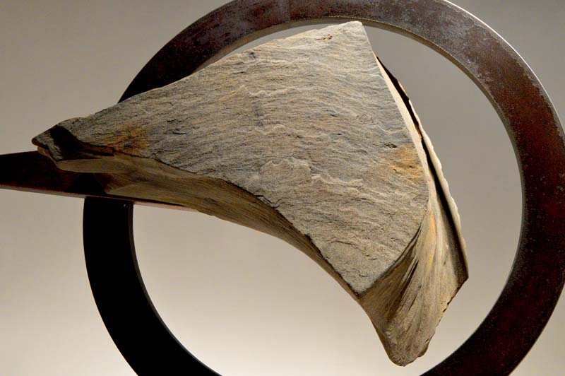 "SISYPHEAN CIRCLE (pointer IX)" 2017, slate/bronze/sealed steel, 15.5"h x22"w x5"d (99h x55w x12d cm)