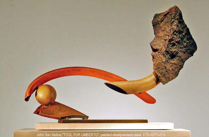 "TOOL FOR UMBERTO" 2001, oil enamel on stone and steel, 17"h x27'w x5'd