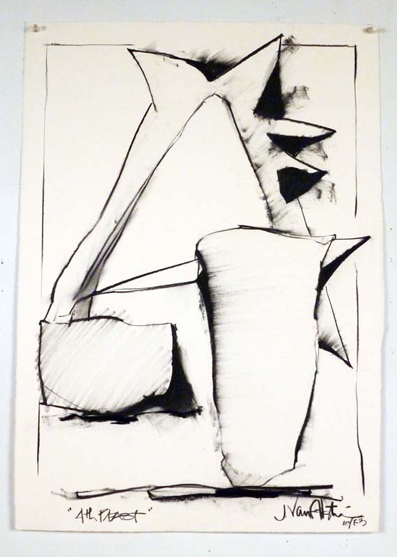 4TH BEAST" 1983, charcoal on paper, 30"h x20"w